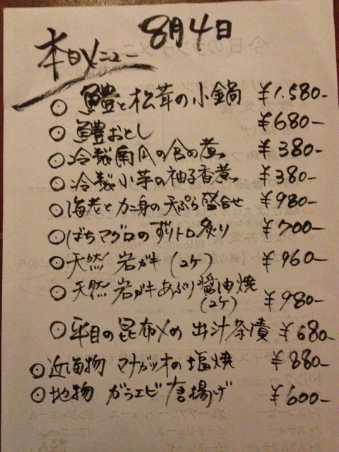 8月4日本日メニューの一部です。